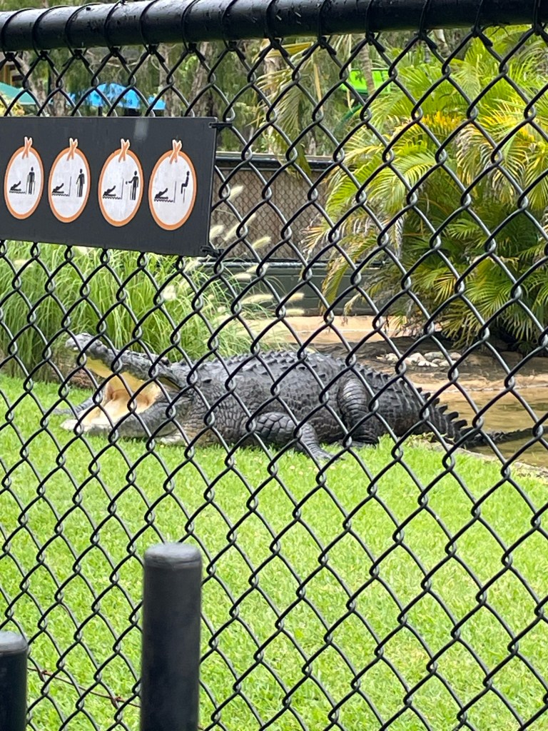 We finished the day at a Crocodile show. There were huge, old crocs in ponds and the caretakers were trying to get them to move around and come after the food they were teasing them with. The one we could see, was very very old (100 years old) if you believe them and he moved a little but not a lot.
