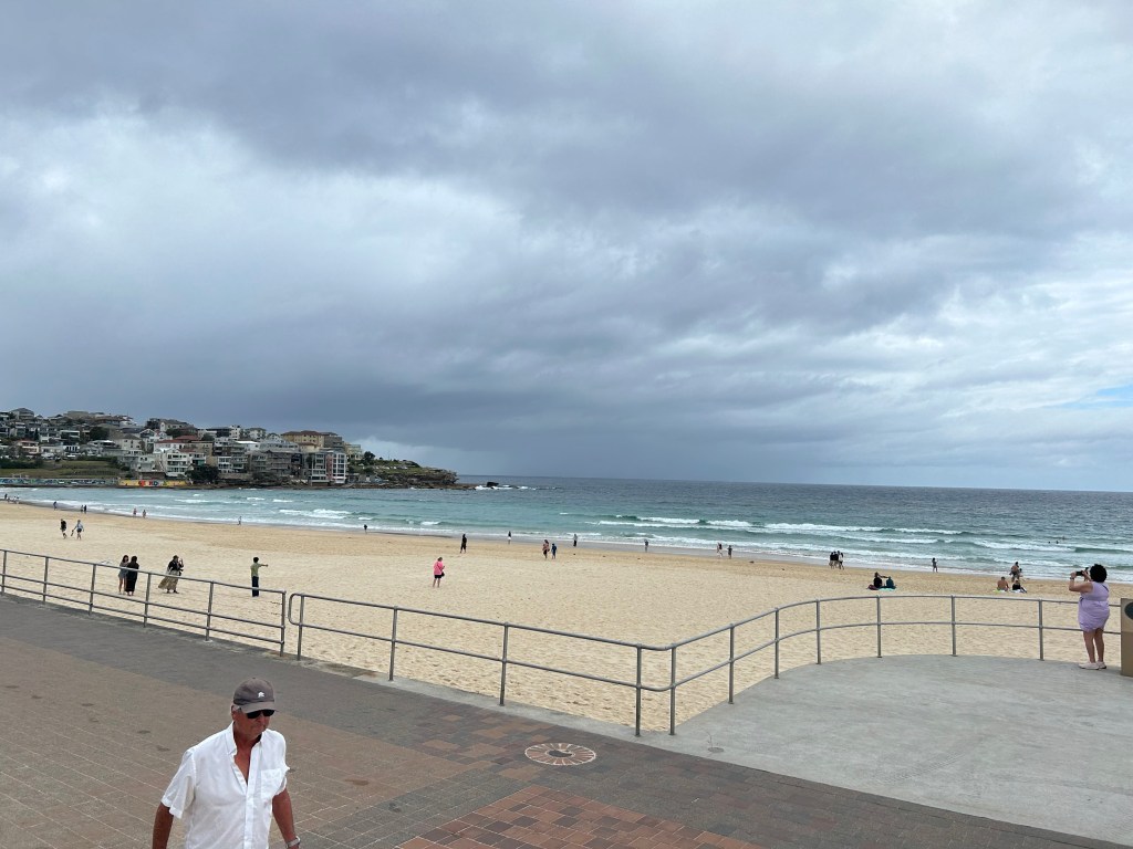 Today started off with a tour around Sydney. Every other corner is a hotel and every second corner is a coffee shop. As we made our way through the city, we stopped first at Bondi Beach. Bondi Beach is one of the most iconic beaches in Australia. Regardless of the weather, which ours was, there is swimming, kids playing, a lot of surfing and people just milling about.